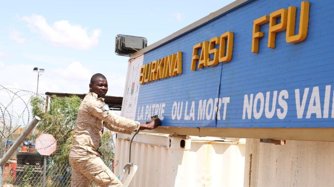 In his work, his artistic talents allow him to be more in touch with the people he serves. In some contexts, the uniform can be intimidating. "The image I try to give to women and men in uniform is that they can and contribute to the balance and well-being of societies." To contribute to that of the Burkinabe contingent in Gao, as a prelude to the last UN peace medal ceremony, YOUL volunteered to refresh the camp's façade with his artistic touch.