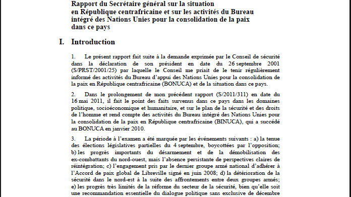 - Rapport du Secrétaire général sur la situation en RCA et sur les activités du BINUCA dans ce pays