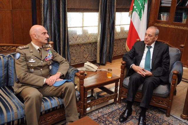 UNIFIL Head of Mission and Force Commander Major-General Luciano Portolano meets Lebanese Speaker of Parliament Nabih Berri.