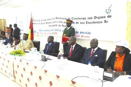 11 February 2015 - Women's organizations of Bissau-Guinean civil society today handed over to the Head of State, José Mario Vaz, the Declaration of Canchungo at a ceremony attended by the UN family led by the Deputy Special…