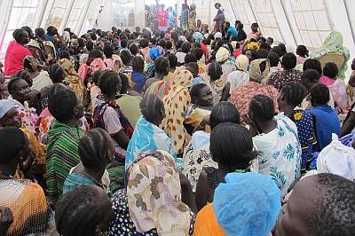 Women attending maternal health community meeting at UNMISS protection site in Unity State capital Bentiu, where an average of eight babies are delivered weekly. Photo: UNMISS/Anna Adhikari