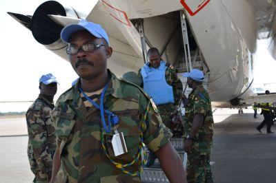 Ghanaian military arriving in Juba on 28 February for deployment to its base in Bentiu, Unity State. The 128 soldiers will help ensure security for displaced people. Photo: UNMISS/Christine Spencer