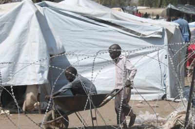 In the midday heat at the UNMISS base in Juba, displaced people go about what has become their normal life for the past two months.From the far gate at the west end of the compound, people return from an aid distribution…