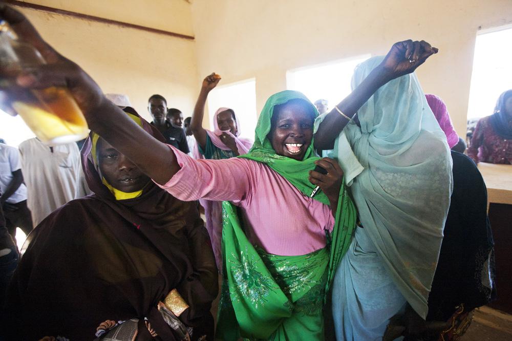 Women celebrate the opening of the new women's market built by UNAMID's Rwandese peacekeepers. Photo by Albert González Farran