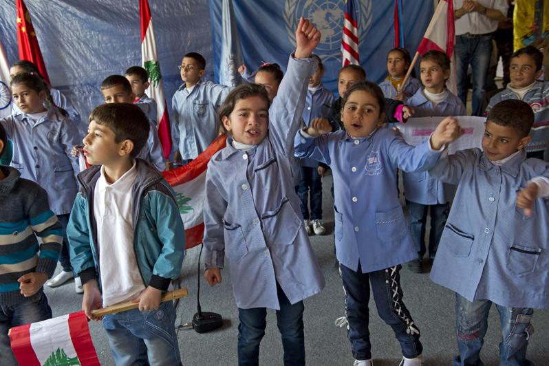 School children performing a song during the event held in Chebaa’s public school.