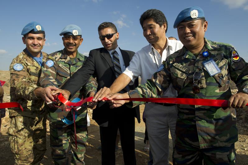 Mayor of Safad al-Batikh, deputy chief of UNIFIL’s Civil Affairs, Malaysian Lt. Com Bin Mohammed, and UNIFIL officials inaugurating the -Forest of Friendship- in Safad al-batikh, on 4 October 2012.