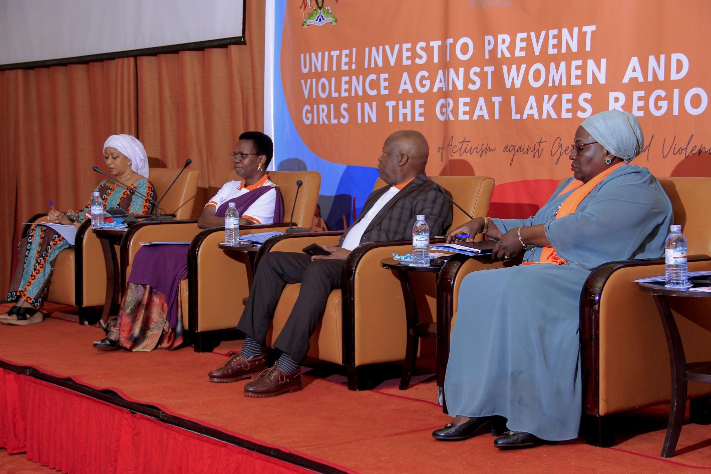 Left-Right: Nene Bah, Senior Gender Advisor, Office of the Special Envoy for the Great Lakes region; Hon. Janviere Ndirahisha, Regional Director for the ICGLR regional training facility in Uganda; Amb. João Samuel Caholo, Executive Secretary of the ICGLR; and Faridah Kibowa, Chair of Uganda National Women Council. Kampala, Uganda, 27 Nov. 2023 (Photo: Fiona Irakoze, ICGLR).