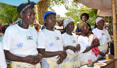 - La cohésion sociale et les activités de consolidation de la paix avec la société civile, les femmes et les femmes associées aux ex-combattants à Bria. Cette action, menée a Bria, a permis la réconciliation des femmes de la faction Goula à celles de la faction Runga, respectivement de l’UFDR et de la CPJP.
