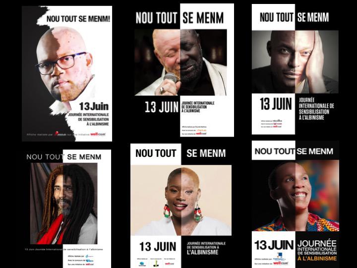 Cette initiative de James Germain est supportée par BIC, Belo, Jimmy Jean Louis, Lòlò, Rutchelle Guillaume et Boukman. Ces artistes haitiens se mobilisent pour la sensibilisation à l’albinisme. Ils ont prêté leurs visages pour illustrer en bi-colore l’albinisme.